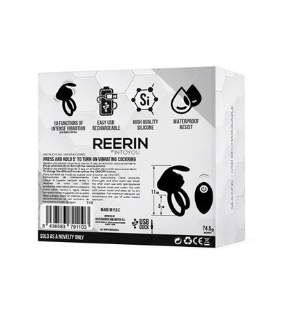 Reerin es un anillo vibrador diseñado para aumentar el placer en pareja. Cuenta con un anillo doble, uno para los testículos y otro para la base del pene. Esta presión doble favorece unas erecciones más potentes y duraderas y un placer mayor. En la parte superior una bala vibradora que hará que la orejita de conejo tintinee y estimule el clítoris de tu pareja.